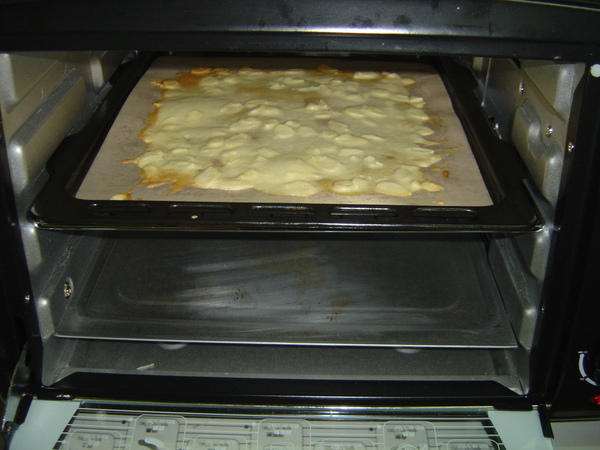 4.將所有材料以湯匙舀到烤盤上,均勻鋪平,鋪的越薄越好,